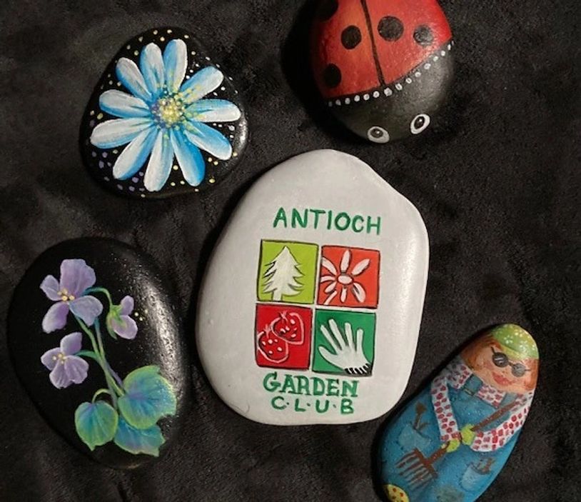 Rock Painting This month we celebrated spring! Our program was presented by our member Nancy C. We all painted rocks to take home and place in our homes and gardens. As seen in the photos, our members are not only talented gardeners but talented painters as well!
